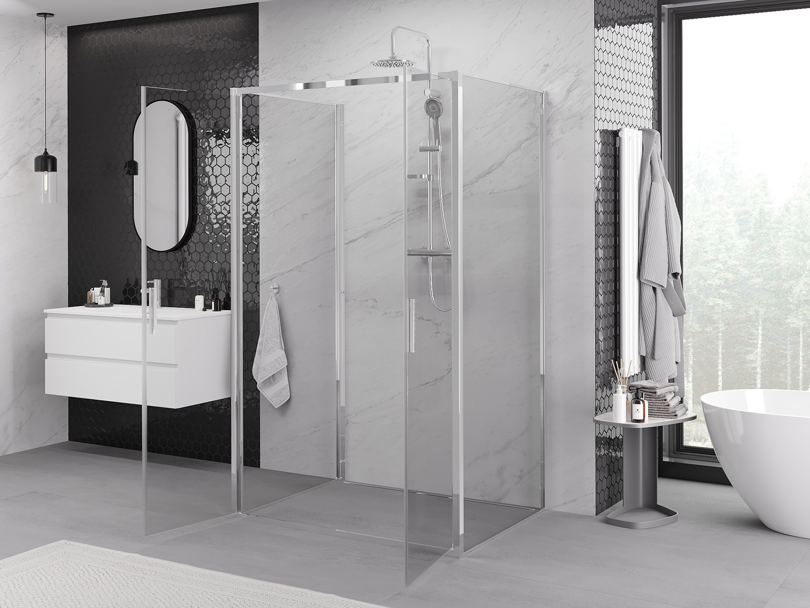 Mexen Exo-3S 3-sienu dušas kabīne verama 110 x 100 cm, caurspīdīga, hromēta - 814-110-100-01-00-3S