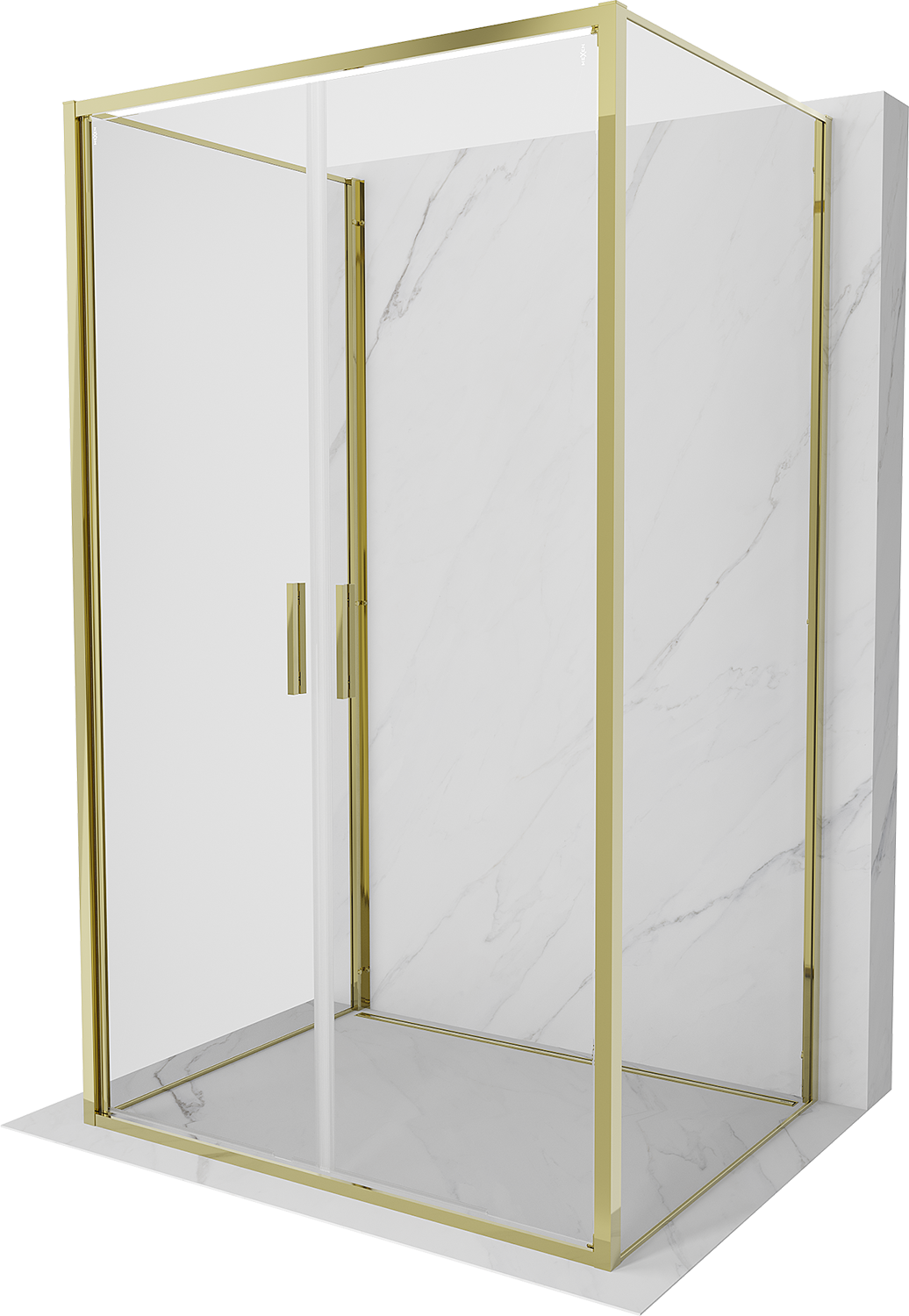 Mexen Exo-3S duša kabīne 3-sienu veramā 90 x 75 cm, caurspīdīga, zelta - 814-090-075-50-00-3S