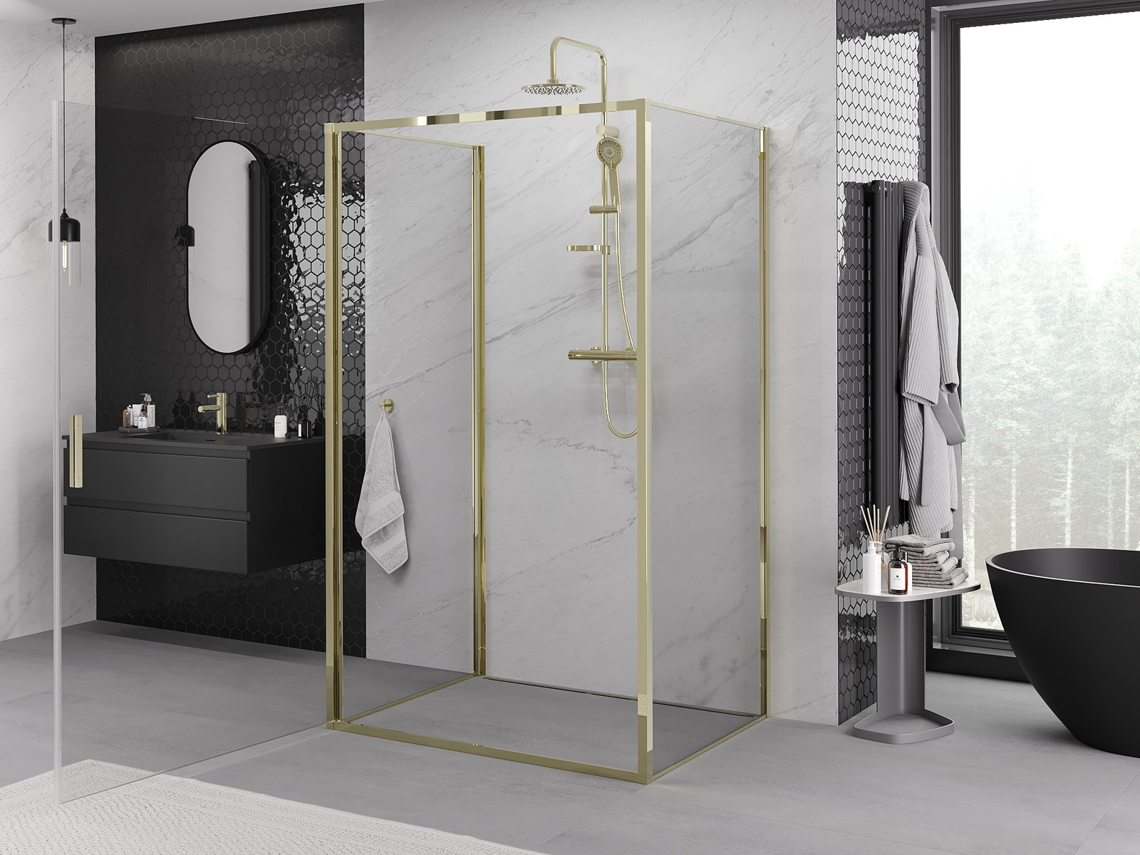 Mexen Exo-3S duša kabīne 3-sienu eņģe 95 x 100 cm, caurspīdīga, zelta - 817-095-100-50-00-3S