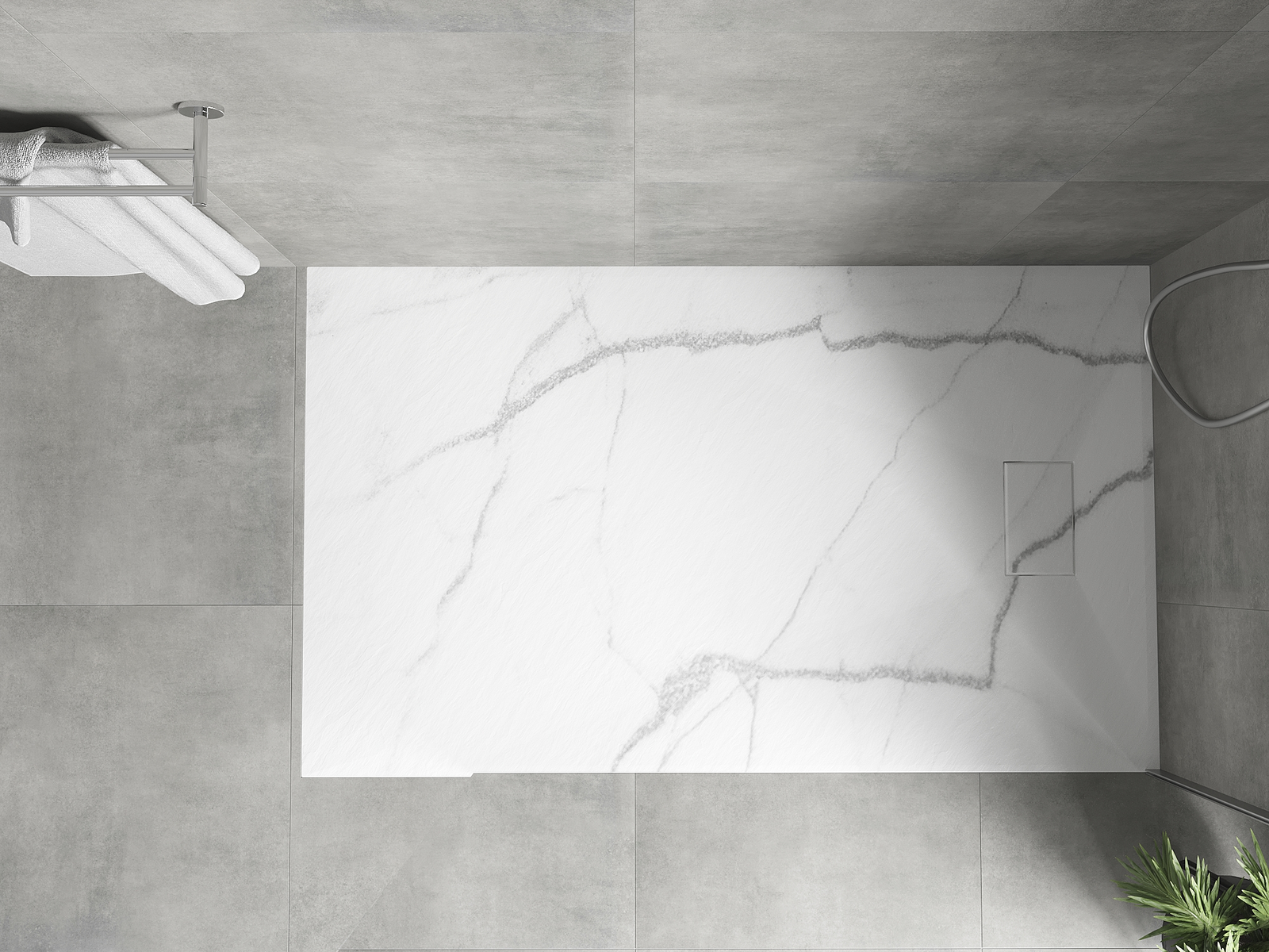 Mexen Hugo taisnstūrveida dušas paliktnis SMC 140 x 80 cm, balts akmens - 42158014