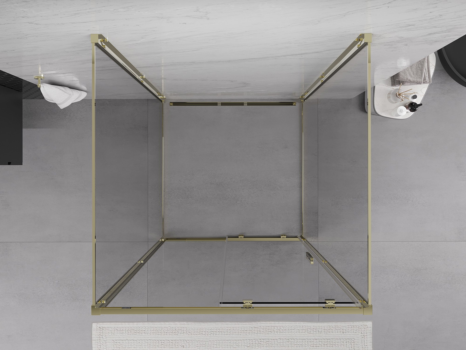 Mexen Exo-3S 3-sienu bīdāmās dušas kabīne 120 x 120 cm, caurspīdīga, zelta - 8151-120-120-50-00-3S