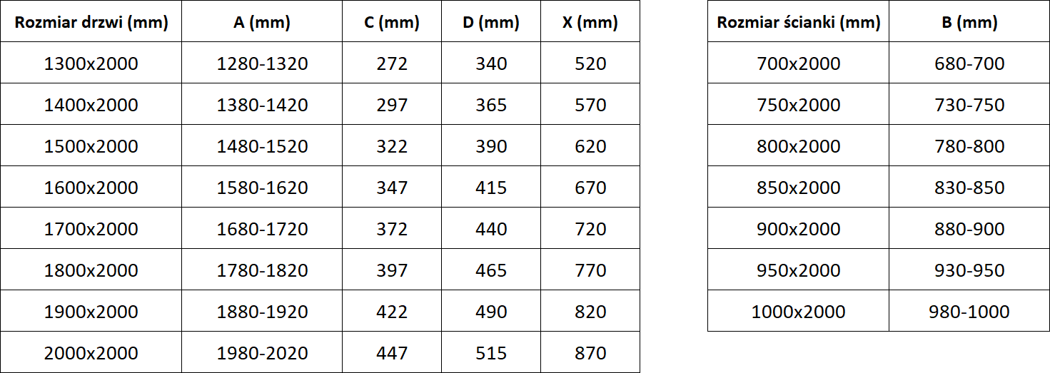 Izmērs: 170x70 cm (durvis 170 cm, sienas 70 cm)