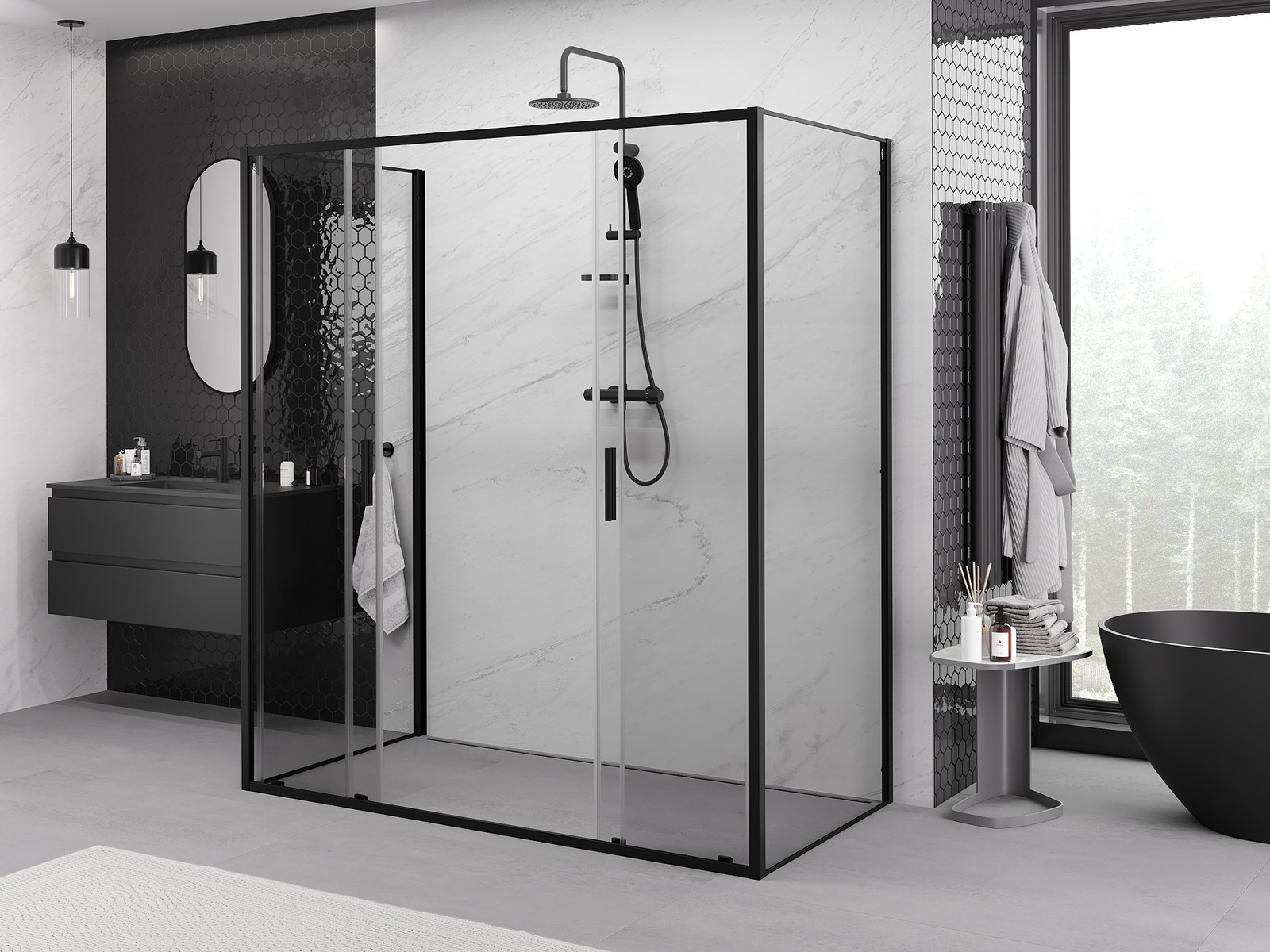 Mexen Exo-3S duša kabīne 3-sienu bīdāmā, 190 x 85 cm, caurspīdīga, melna - 8152-190-085-70-00-3S