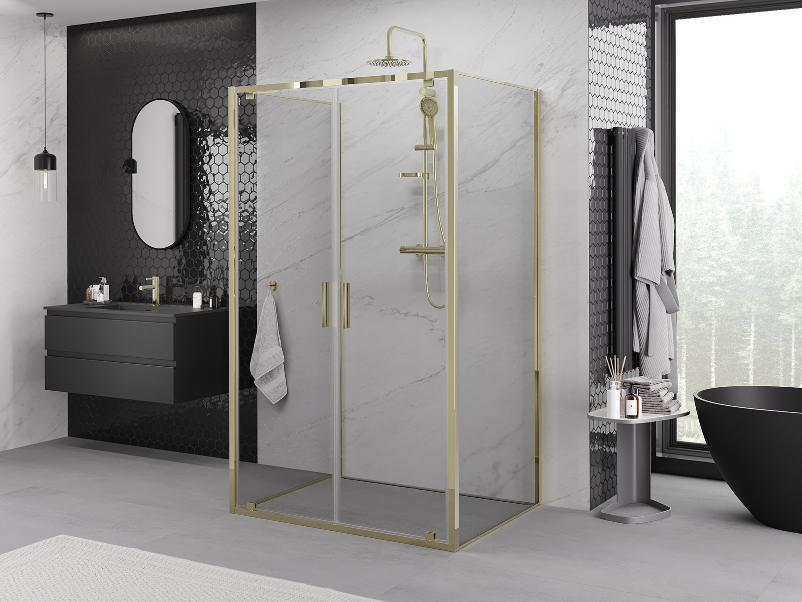 Mexen Exo-3S 3-sienu atverama dušas kabīne 90 x 120 cm, caurspīdīga, zelta - 8182-090-120-50-00-3S