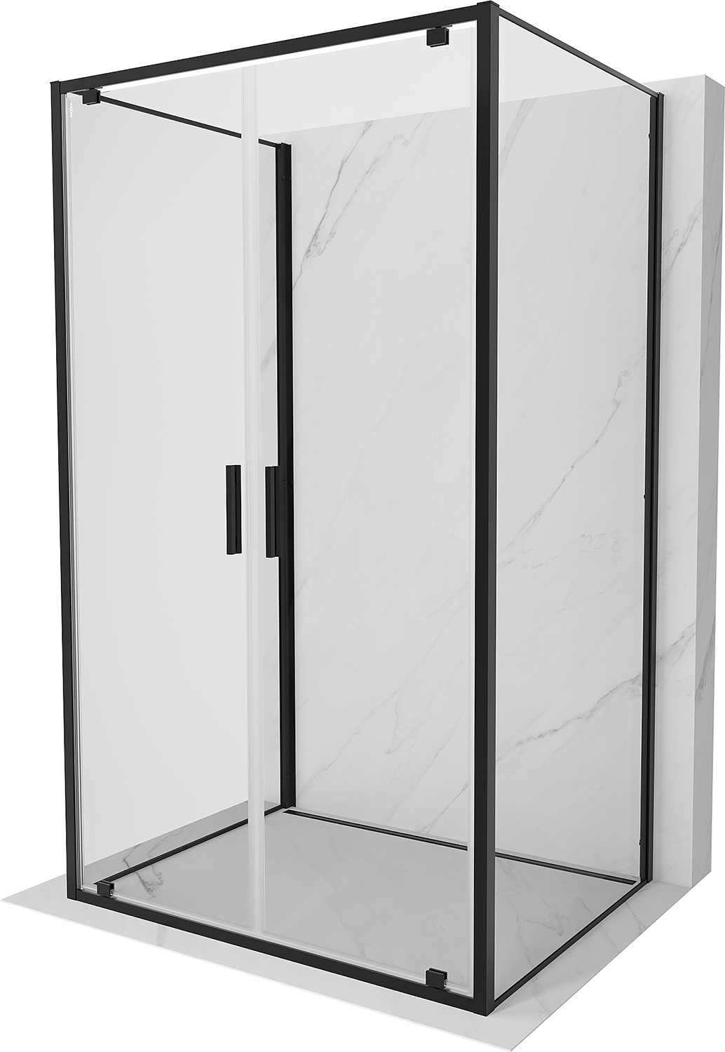 Mexen Exo-3S trīssienu dušas kabīne ar veramām durvīm 100 x 110 cm, caurspīdīga, melna - 8182-100-110-70-00-3S