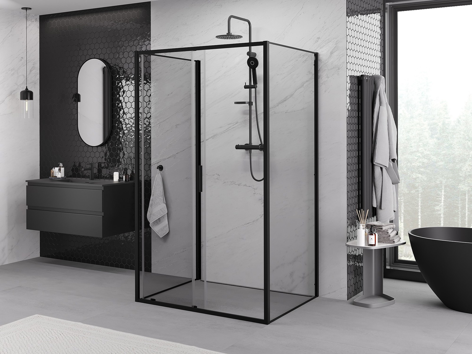 Mexen Exo-3S dušas kabīne ar trīs kustamām sienām 125 x 120 cm, caurspīdīga, melna - 8151-125-120-70-00-3S