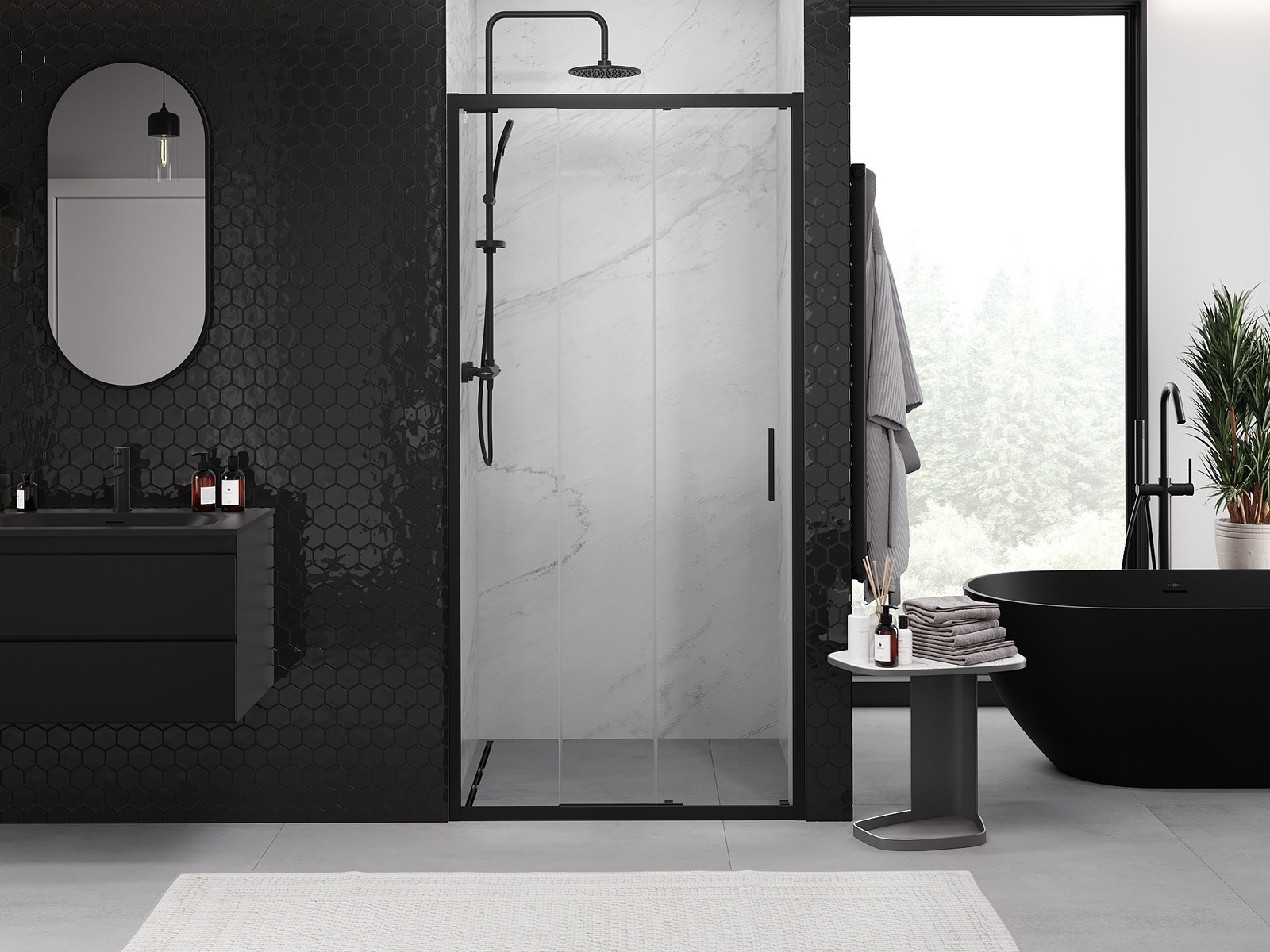 Mexen Exo-3S bīdāmas dušas durvis 90 cm, caurspīdīgas, melnas - 8153-090-000-70-00
