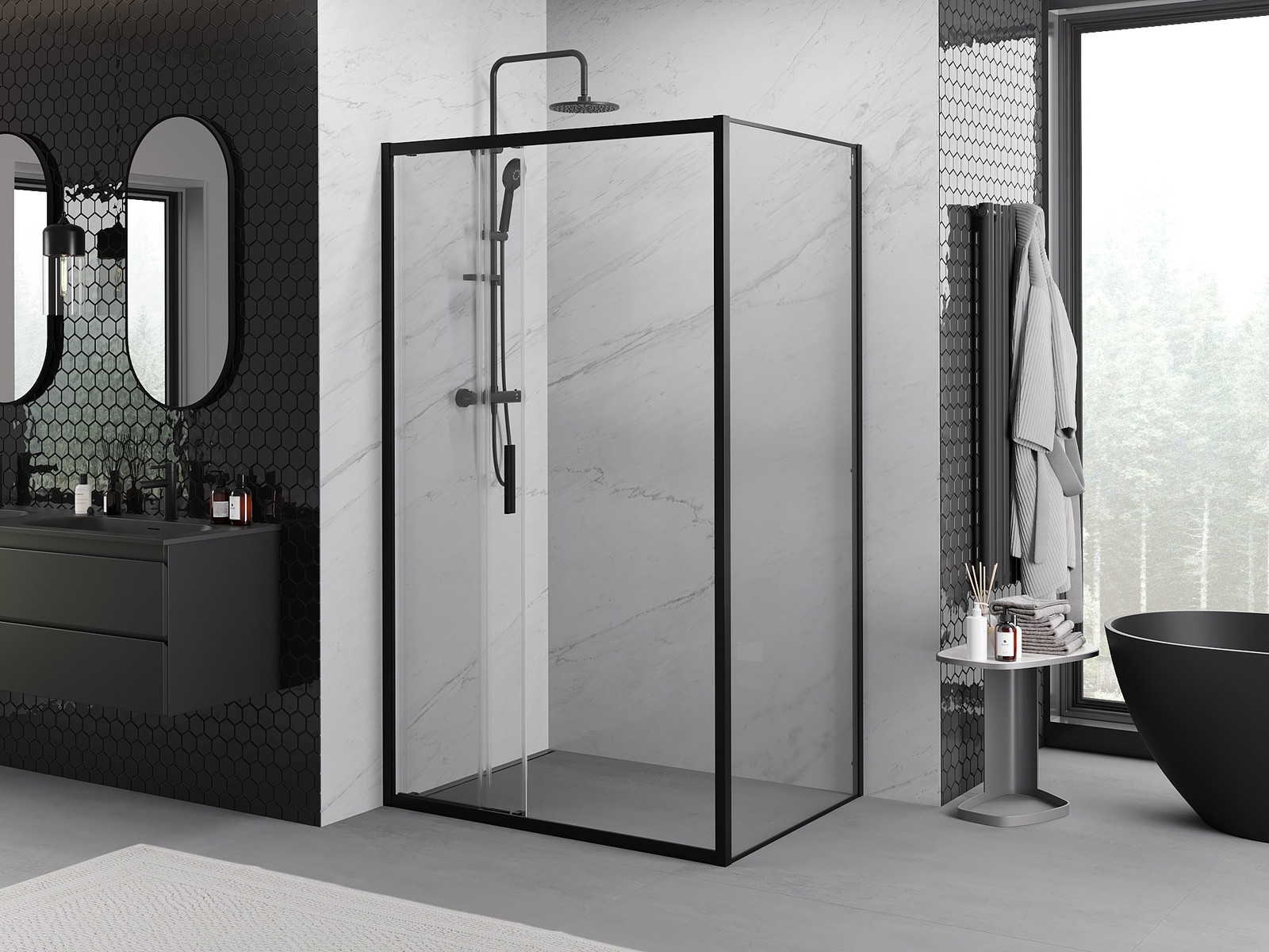 Mexen Exo bīdāmā dušas kabīne 80 x 75 cm, caurspīdīga, melna - 8153-080-075-70-00