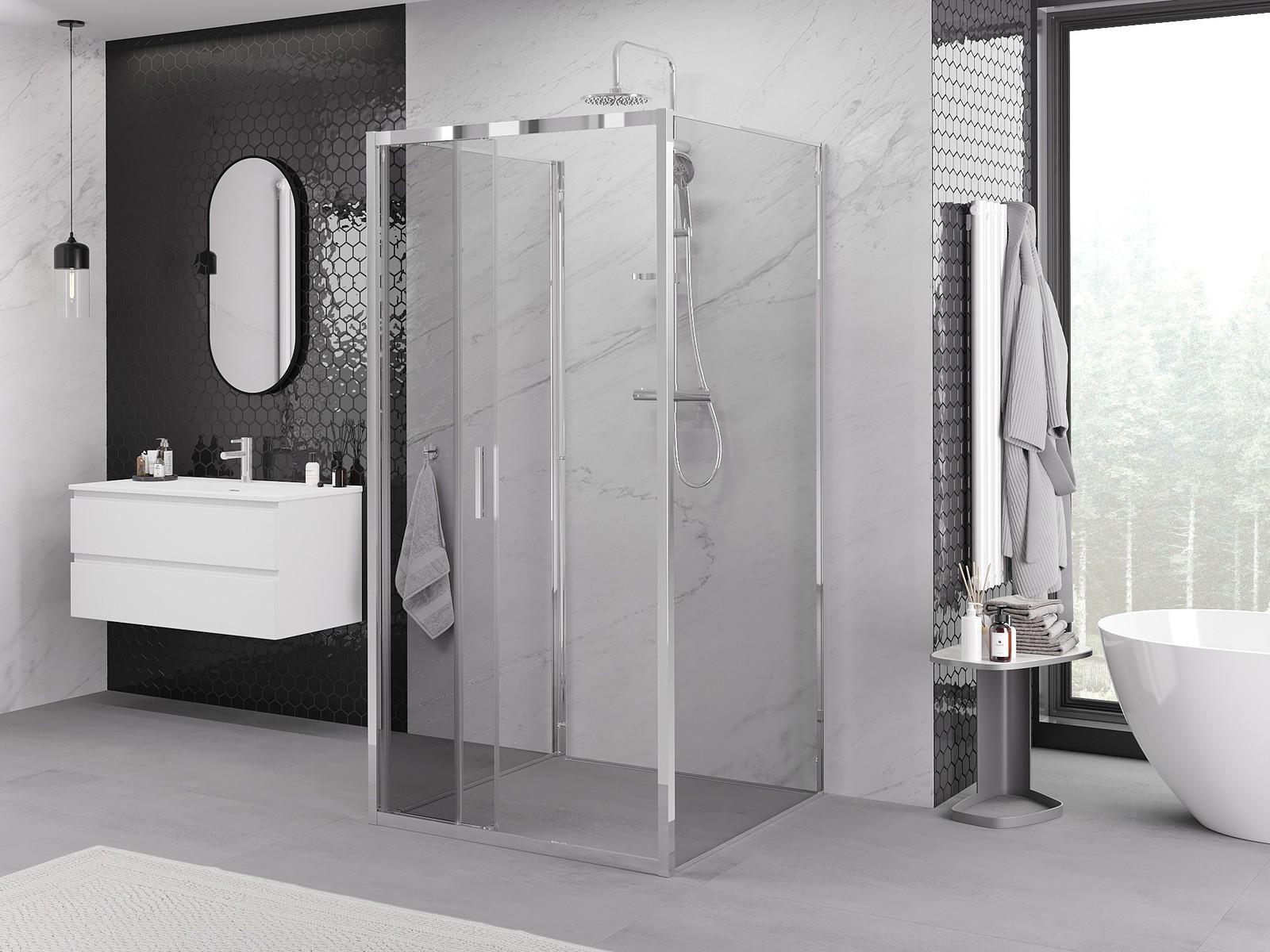 Mexen Exo-3S 3-sienu bīdāma dušas kabīne 80 x 80 cm, caurspīdīga, hroma - 8153-080-080-01-00-3S