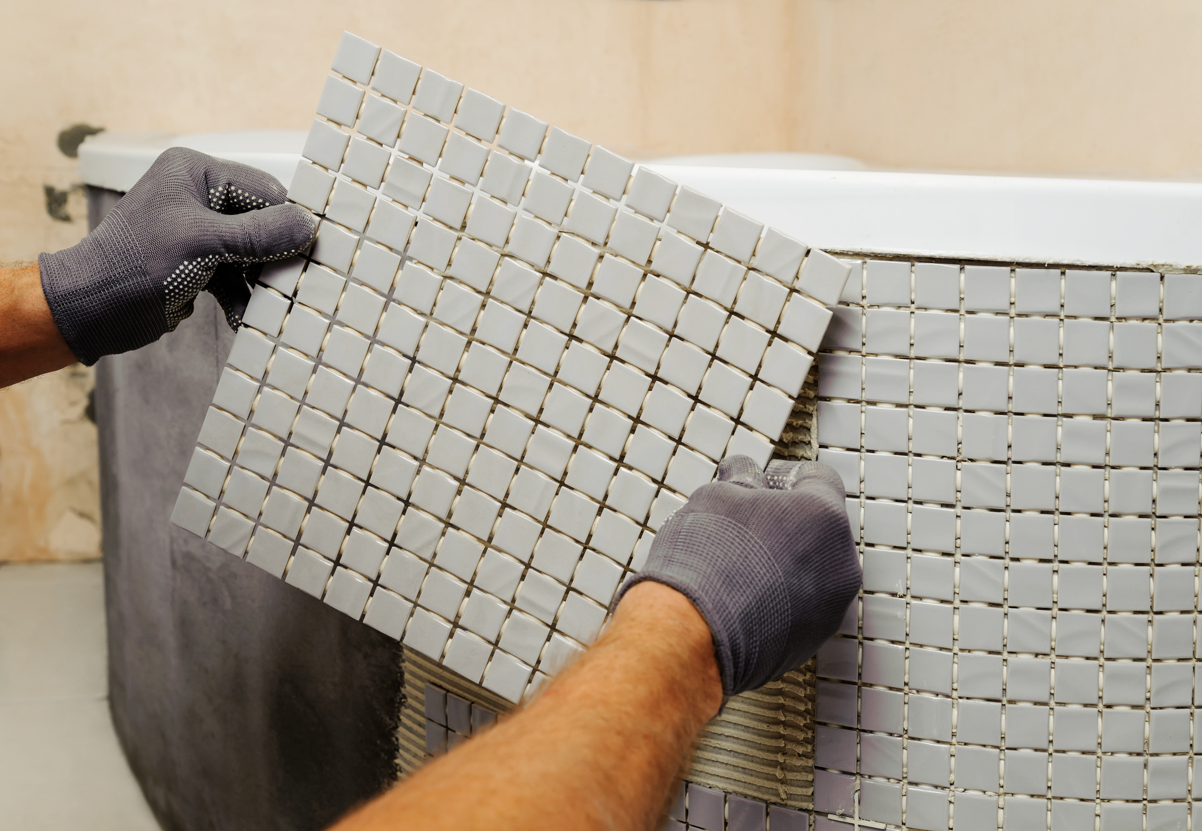 - Nepieciešams elastīgs flīžu līme, flīžu apdare ar dekorācijām, kā arī flīžu šuvotājs.