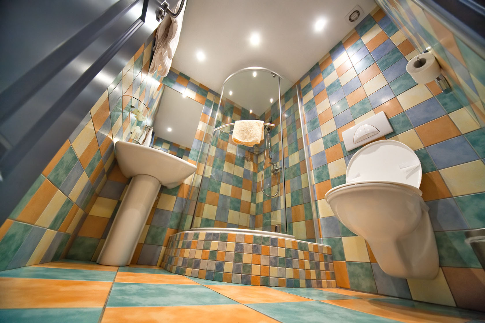 Tad jāizurbj caurumi attiecīgajās vietās un jāievieto tajos enkura dībeļi. Līnija, pa kuru jāpiestiprina sānu profili, jānoslēdz ar silikonā hermētiķi. Sānu montāžas profili jāpiemēro pie sienas, un kad tie ir jau precīzi novietoti, tie jāpiestiprina tai. Atkal jāuzstāda visa kabīnes konstrukcija un jāievieto sānu profilos pirms silikonā uzklāšanas uz apakšas profila apakšējās malā. Pienācīgi pielāgoti rāmji jau ir paredzēti pievilcībai ar sānu profiliem. Savukārt augšējās un apakšējās sienu malās jāuzliek blīves.