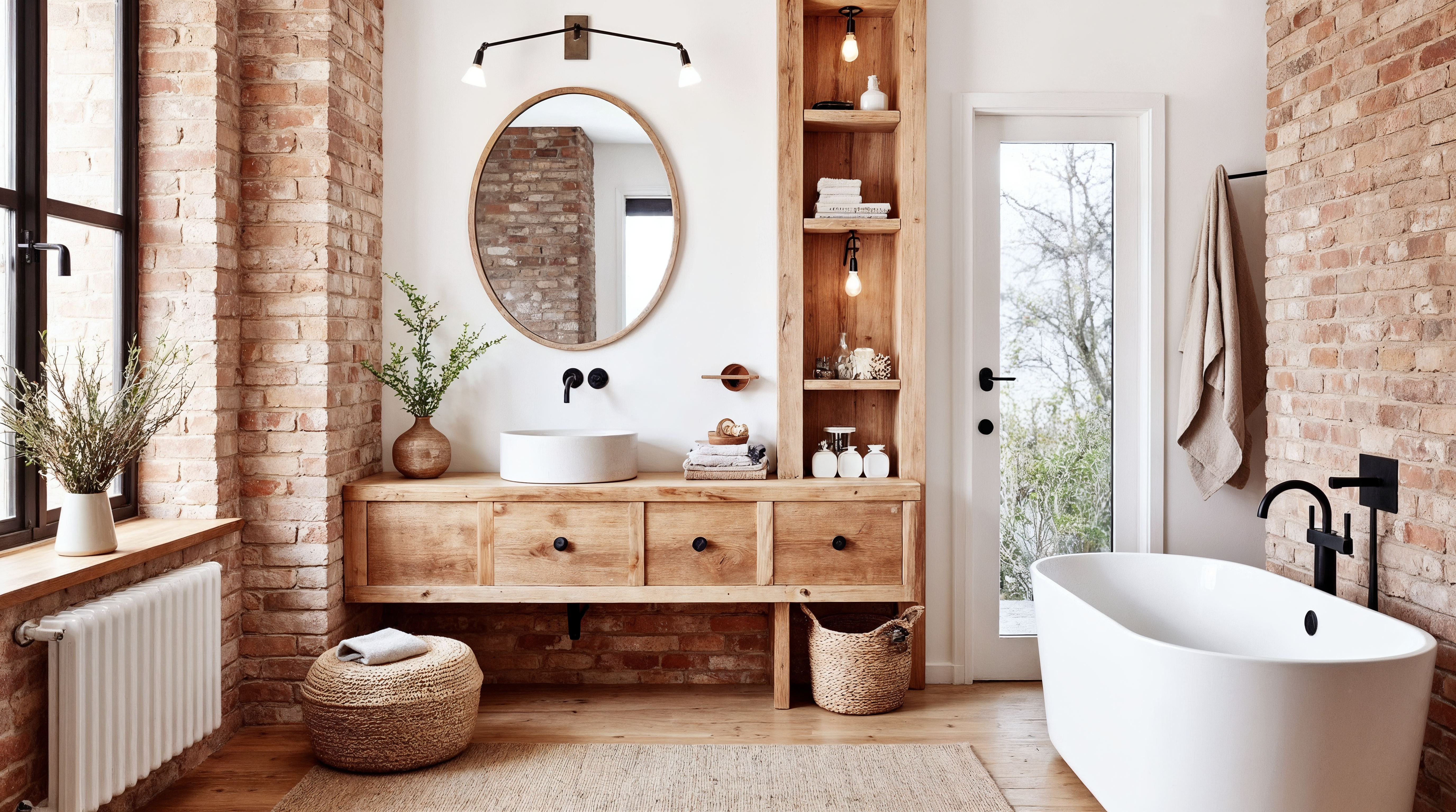 Kādus materiālus vērts izmantot rustikālā vannas istabas iekārtojumā?